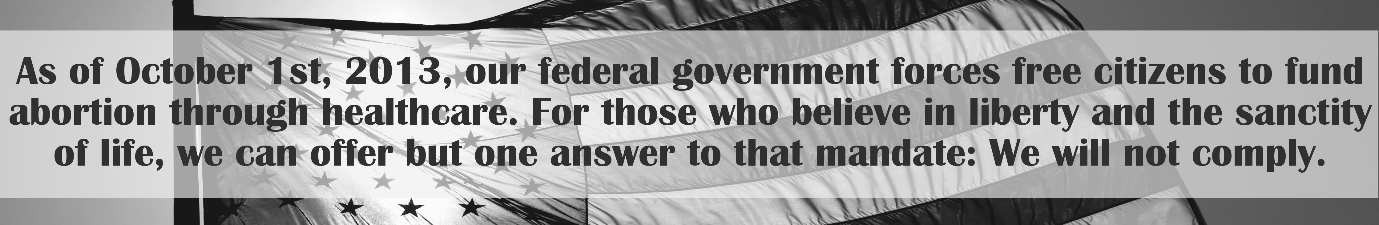 In practicality, this means we will not choose an insurance policy that contains abortion funding, whether directly or indirectly, even to the point of choosing no insurance, at all. Furthermore, we support any citizen who chooses to act in peaceful protest, including non-violent civil disobedience, as the government has no authority to force us, as free citizens, to violate our conscience or forfeit our religious freedoms.